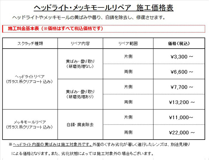 ヘッドライトの黄ばみ、輸入車アルミモールのくもりを除去、新車の輝きを蘇らせます!